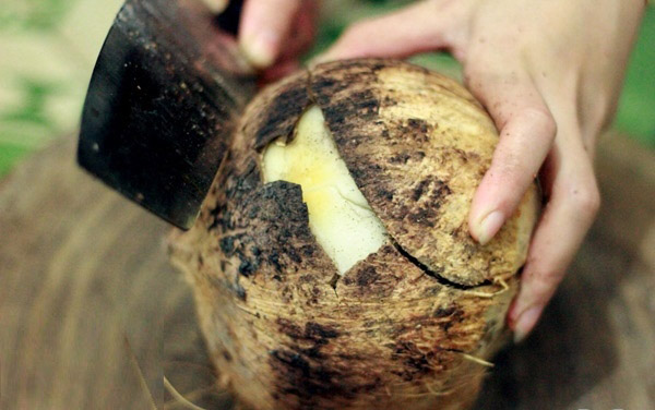 Chỉ cần nghe cái tên thôi là bạn biết được sự khác biệt của món ăn này rồi đúng không nào!. Dừa nguyên trái sẽ được người thái đem nướng trên bếp lửa, rồi đem đi ướp lạnh tạo ra một món đồ uống vừa độc lạ vừa thơm ngon nhất trần đời.