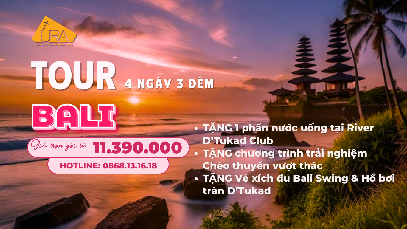 Du Lịch Bali 4N3D: Bali – Kintamani – Tặng Chèo Thuyền Vượt Thác – D’Tukad Club (Bay VJ)