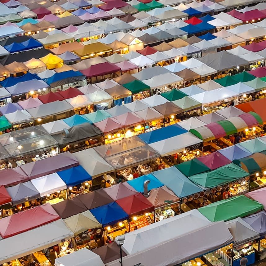 Sáng đi chợ nổi rồi thì tối phải đi chợ đêm nha. Không nơi nào lập lòe ánh đèn mà tập trung đầy đủ thứ ăn chơi như chợ, nhất là các khu chợ đêm Thái Lan. 3 ngày ở Thái không thể nào khám phá hết các chợ đêm Bangkok đâu nhưng ít nhất là bạn nên đi 1 khu chợ để thấy hết sự náo nhiệt của thành phố về đêm. Các khu chợ đêm thường bắt đầu mở từ khoảng 17h hay 18h tới nửa đêm, càng về đêm càng náo nhiệt.