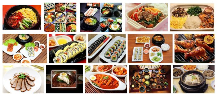 Bạn có thể nếm thử các món ăn như: Bulgogi (thịt nướng BBQ), Bibimbap (cơm trộn Hàn Quốc), kim chi Hàn Quốc, Japchae (miến trộn), Soondubu Jjgae (súp đậu phụ kho), Seolleongtang (canh bò), Tteokbokki (bánh gạo), Dakjuk (cháo gà), Hotteok (bánh pancake đường phố), Yangnyeom tongdak (gà rán), …
