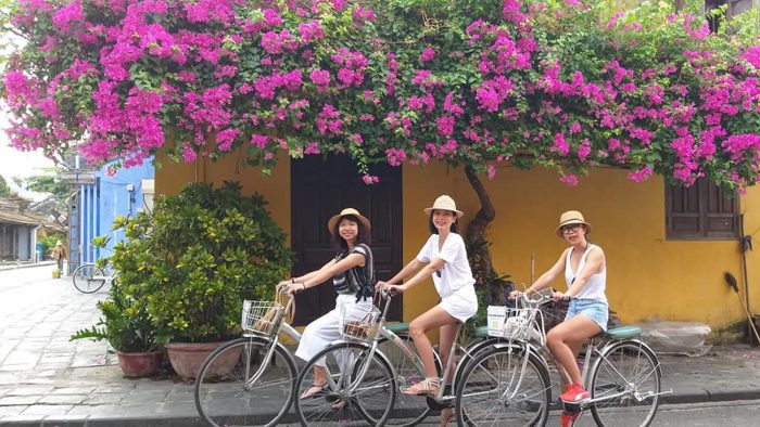 Ngoài dạo phố bằng cách đi bộ, đạp xe đạp tham quan một vòng phố cổ cũng là một hoạt động thú vị mà bạn thử. Bởi lẽ, Phố cổ Hội An không quá rộng kèm theo đó đường xá dễ đi lại nên rất thuận tiện cho việc khám phá những ngóc ngách, những bí mật ở nơi này.
