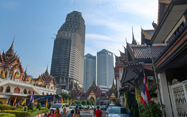 Đối diện với chùa Wat Yannawa là một cao ốc bỏ hoang lâu năm, từ những năm 1995 trở lại đây. Người dân nơi đây kể lại, một vị thương gia Ả Rập đầu tư xây dựng khu đất đó thành một khách sạn lớn tầm cỡ khoảng 40 tầng nhưng vị trụ trì khuyên ngăn nên hủy dự án này. Theo vị trụ trì, cao ốc sẽ làm chùa bị khuất ánh mặt trời, ngôi chùa có nguyên khí rất mạnh nên sẽ xảy ra sự cố. Vị thương gia vẫn cố thây dựng bằng được, khi tòa cao ốc xây cao hơn đỉnh tháp của chùa thì gia đình ông tỷ phú gặp phải tai họa, ông ta qua đời vì tai nạn ô tô. Người nhà qua hoảng sợ và ngừng dự án, bán lại mảnh đất nhưng không ai mua. Từ đó về sau, câu chuyện được lưu truyền càng tô đậm thêm sự linh thiêng của ngôi chùa Thuyền.
