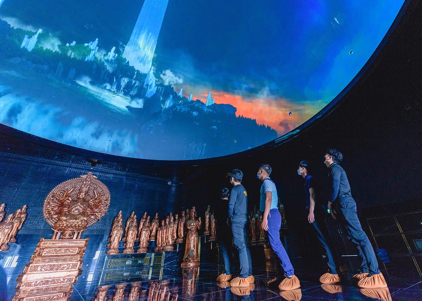 Quý khách đến đây được hướng dẫn vào khu vực trưng bày 163 bức tượng Phật giữa không gian trang nghiêm, yên tĩnh. Mái vòm của khu vực này sẽ trở thành một màn chiếu “khổng lồ” với đường kính 20 m, độ phân giải Dome đến 16 triệu pixel (tương đương 26 triệu pixel của màn ảnh thông thường). Ở khu trưng bày, sự vận động của vũ trụ được tái hiện sinh động bằng công nghệ hình ảnh 3D mapping.