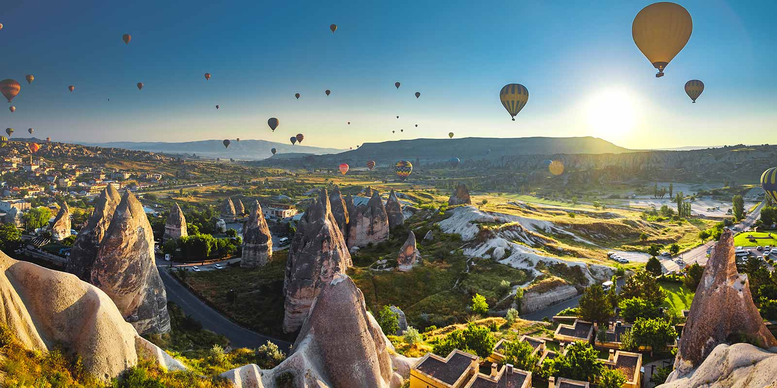 - Option 1: Bay khinh khí cầu đón bình minh: Quý khách sẽ có cơ hội chiêm ngưỡng toàn cảnh Cappadocia từ trên cao trong khoảnh khắc bình minh rực rỡ, khi mặt trời từ từ ló rạng giữa hàng trăm quả bóng bay sặc sỡ. Sau khi hạ cánh, quý khách sẽ được tham gia một buổi tiệc nhẹ ấm cúng với bánh ngọt và rượu champagne, và nhận chứng nhận (certificate) như một món quà lưu niệm đánh dấu hành trình đặc biệt này.