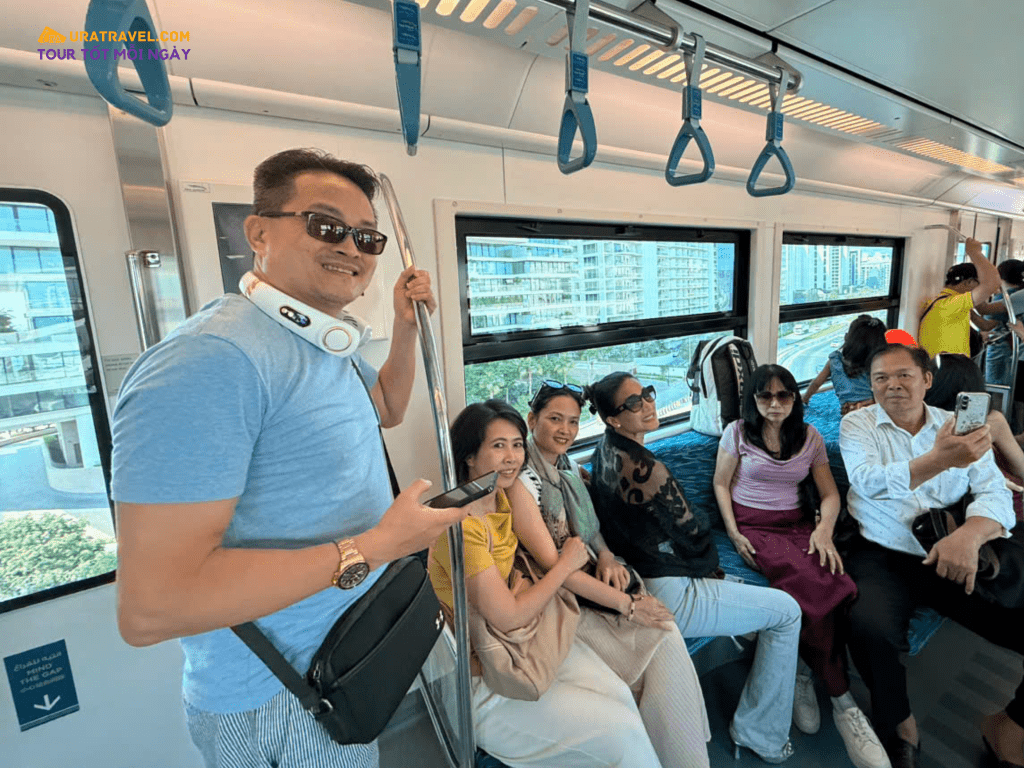 Tặng đoàn 1 chặng tàu trải nghiệm monorail chạy dọc “thân cây cọ” trên không để đến đảo cọ nhanh chóng và có cơ hội chiêm ngưỡng vẻ đẹp của hòn đảo nhân tạo từ trên cao.