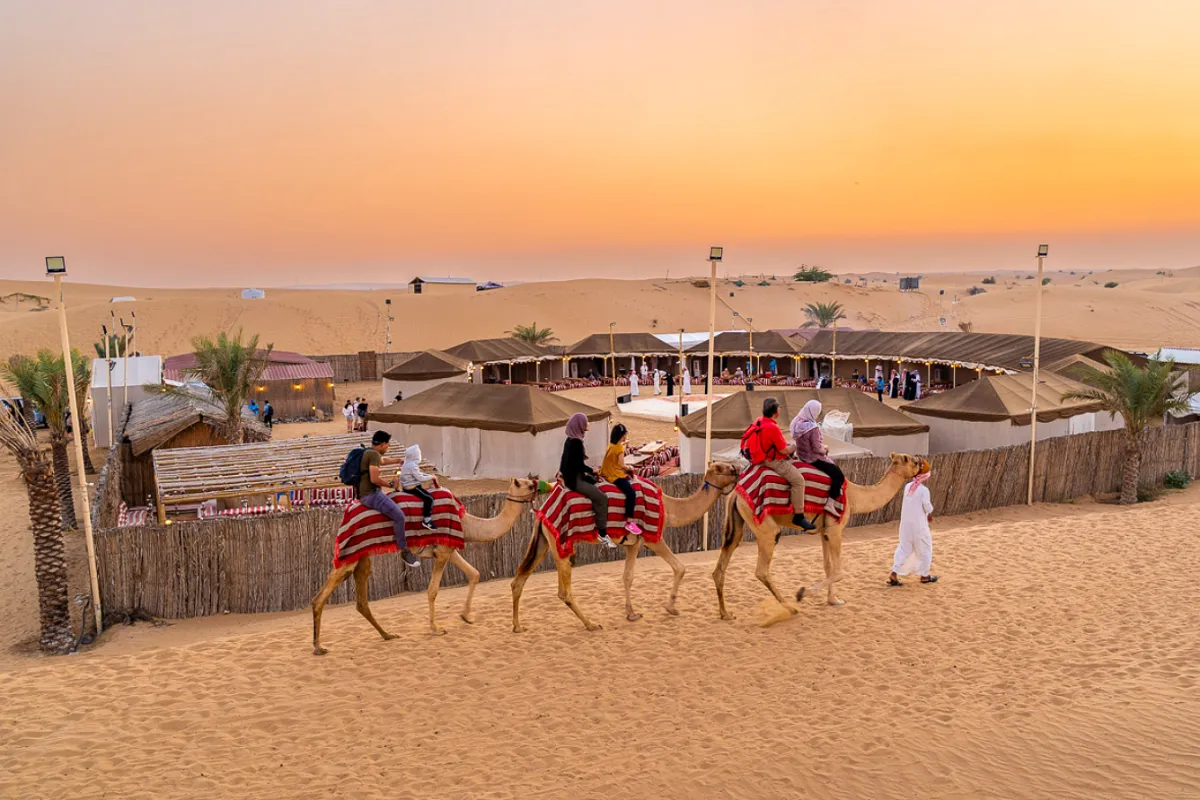 Đến điểm dừng chân, cửa ngõ trước khi vàoSa mạc. Quý khách bắt đầu cuộc phiêu lưu của mình với cảm giác mạo hiểm trên các đồi cát. Cuối hành trình, Quý khách sẽ đến điểmcắm trại Lạcđà – một địa điểm tập kết của người dân địa phương để đón các đoàn khách du lịch. Chính nơi đây Quý khách sẽ tận hưởng cảm giác tuyệt vời khi chiêm ngưỡng hoàng hôn sa mạc như một dân du mục thực thụ. Quý khách sẽ được chào đón một cách nồng ấm bởi người dân nơi đây cùng thưởng thức chà là, vẽ henna…và đặc biệt là mộtbữa tiệc buffet BBQ cùng với cácvũ công belly dance cực kỳ quyến rũ.